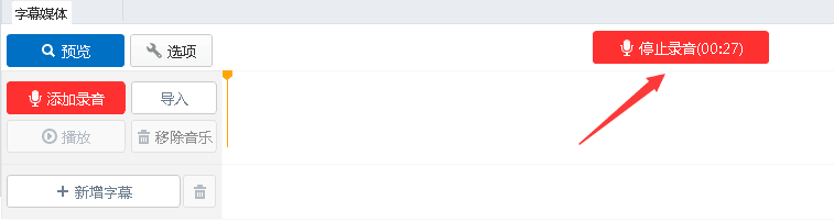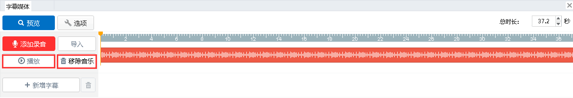 6)保存后的錄音會(huì)出現(xiàn)在字幕媒體編輯面板中。可以選擇“刪除音樂(lè)”或者“播放”錄音。